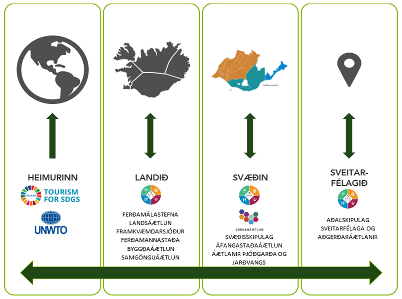 Svo unnt sé að vinna markvisst eftir Áfangastaðaáætlun Suðurlands er mikilvægt að það sé rauður þráður frá henni yfir í aðrar staðbundnar áætlanir, á landsvísu og jafnvel á heimsvísu.