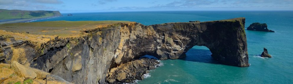 Many exciting geological sites are within Katla Geopark and they offer varied geology and often spectacular views. The sites listed here are all close to the ring road (nr. 1) and are easily accessible for most people. There are also numerous other Geosites within the Geopark that offer insight into the geology and geological processes and are listed on the Geopark's webpage. The Geology trail can be split into two parts, the east, and the west. The west trail lies between the towns of Hvolsvöllur and Vík and the traveling time is about two hours. The eastern trail goes to the east of the town of Kirkjubæjarklaustur and it takes also about 2 hours to drive that trail. Each part of the trail is therefore a perfect day tour, while it would be a good idea to stay overnight somewhere if you plan to do both. There are many hotels, hostels, cabins, and camping sites within the Geopark, so finding a place to stay should not be difficult.
