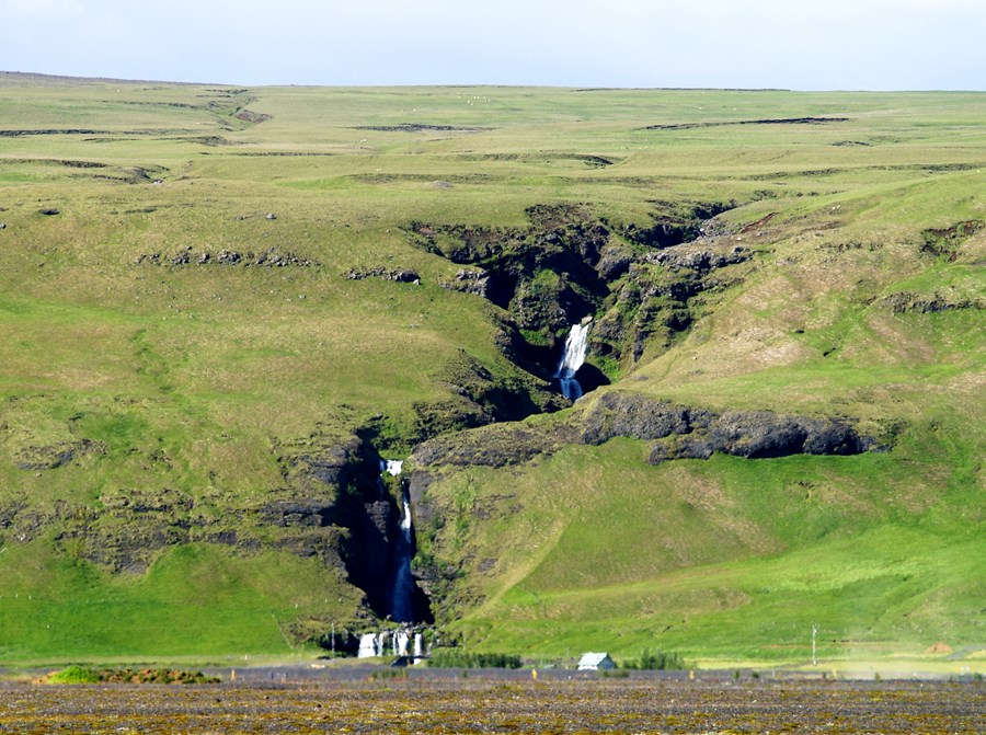 Is about 10 km east of the town of Kirkjubæjarklaustur. The waterfall is behind a collection of farms in a beautiful setting. The water in the waterfall comes from a lake called Þórutjörn. It is possible to walk up to the lake via a small hiking trail near the waterfall and make sure to take in the beautiful views of the surroundings along the way.