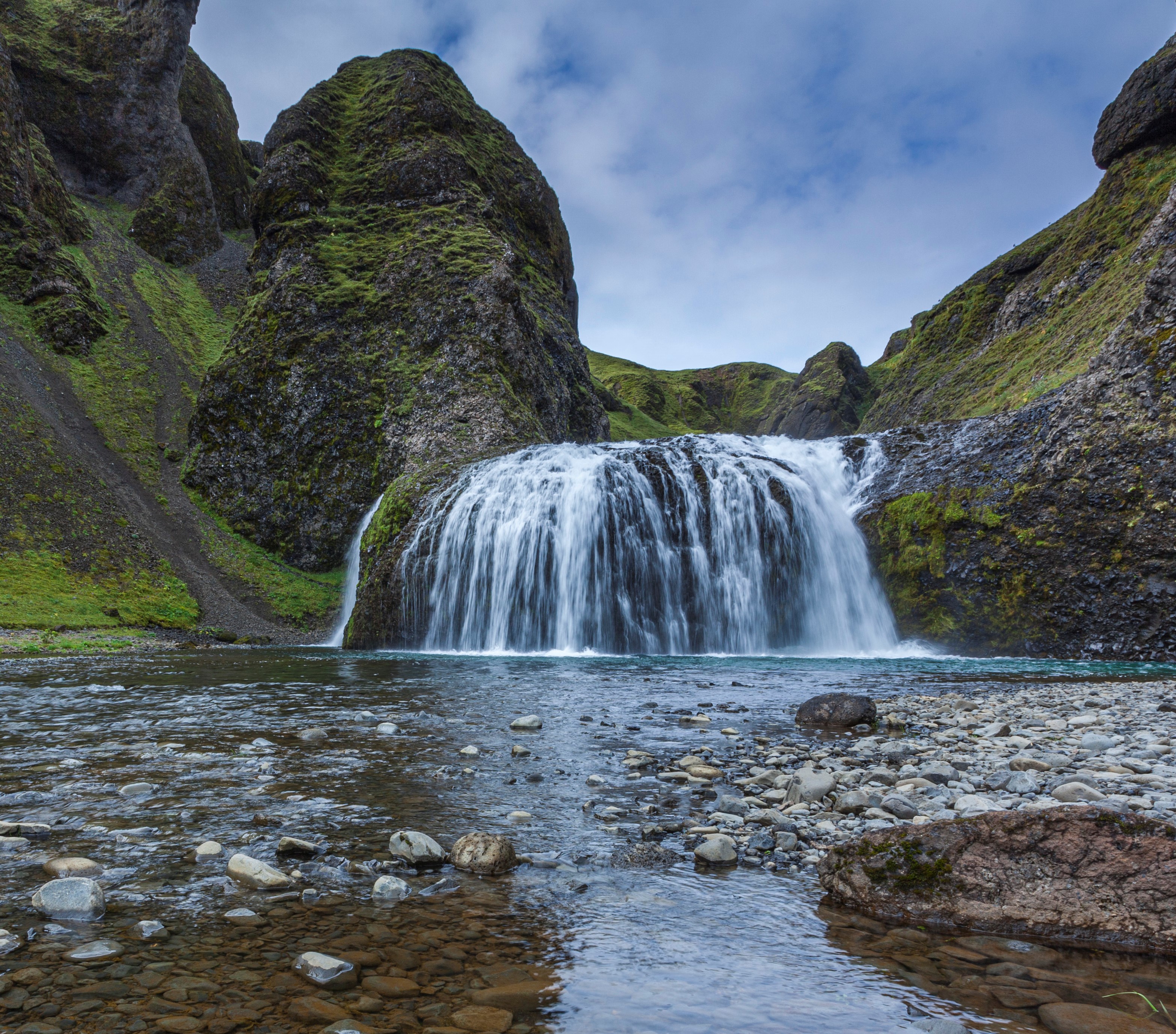 Is in a small canyon 1.5 km to the east of Skógafoss. A hiking path leads up to it from the car park of the museum at Skógar. We recommend checking out the museum along the way, where you can learn about the history of the area and how people traversed the glacial rivers before they were bridged.