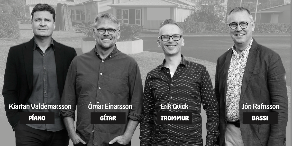 The quartet of guitarist Ómar Einarsson, along with Kjartan Valdemarsson, Jón Rafnsson and Erik Qvick will perform at the Museum with a concert, but they have been widely present in the Icelandic music scene in recent years. The program will include well-chosen works by, among others, Ornette Coleman, John Abercrombie, Victor Young, Pat Metheny and others. It is not unlikely that original material will also be on the program.