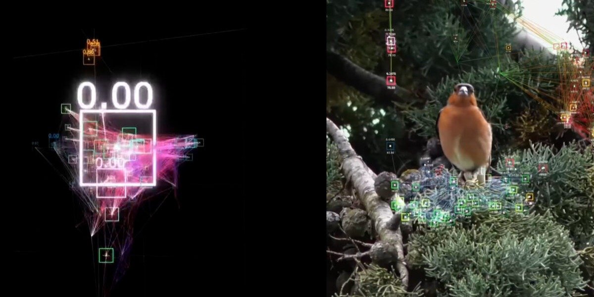 Only Data was first shown at an exhibition in Schloss Plüschow (Sept. 2025).2 The materials or the contents of the video emerged from a long-term engagement that Castioni has with asylum-seekers living in Germany, whom she has met in workshops and artist-in-residency programs. The subjects in the video are seeking asylum in Germany and inhabit a liminal space: temporary facilities designed and designated by various federal states for this purpose. The artist led hands-on workshops in collaboration with these temporary facilities from 2023 to 2024 and developed a program around terms of nature and landscape. As a result of these conversations and workshops, she noticed that birds became a recurring metaphor or leitmotif for displacement, orientation and belonging. The symbol of the bird could label trauma without directly naming it as such. In her own words: “By analysing bird calls and transforming them into visual numeric data, the installation reflects on how individuals navigating uncertain conditions often become merely data points, stripped of subjective background, my aim is to highlight the tension between lived experience and bureaucratic systems of classification, questioning how people who exist in states of transit can reclaim visibility and agency within environments that frequently reduce them to coded or data information.”3 Only data contains a montage that is staccato-like, with rapidly changing visuals that seem to come to a state of repose or slow down towards the end of the video. Footage of men walking in foliage or foliage alone is colour inverted, giving an uncanny or futuristic sense of alienation or displacement to the natural world.4