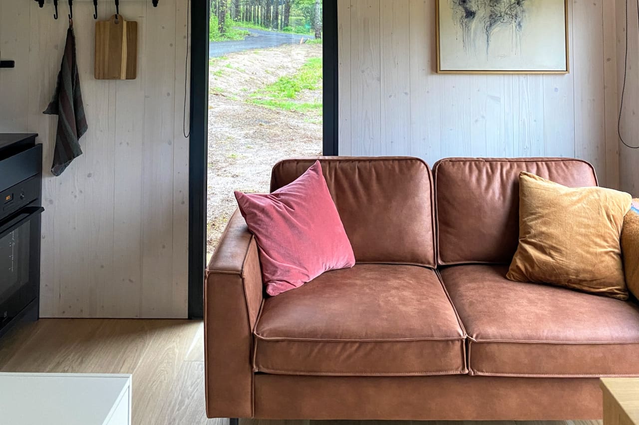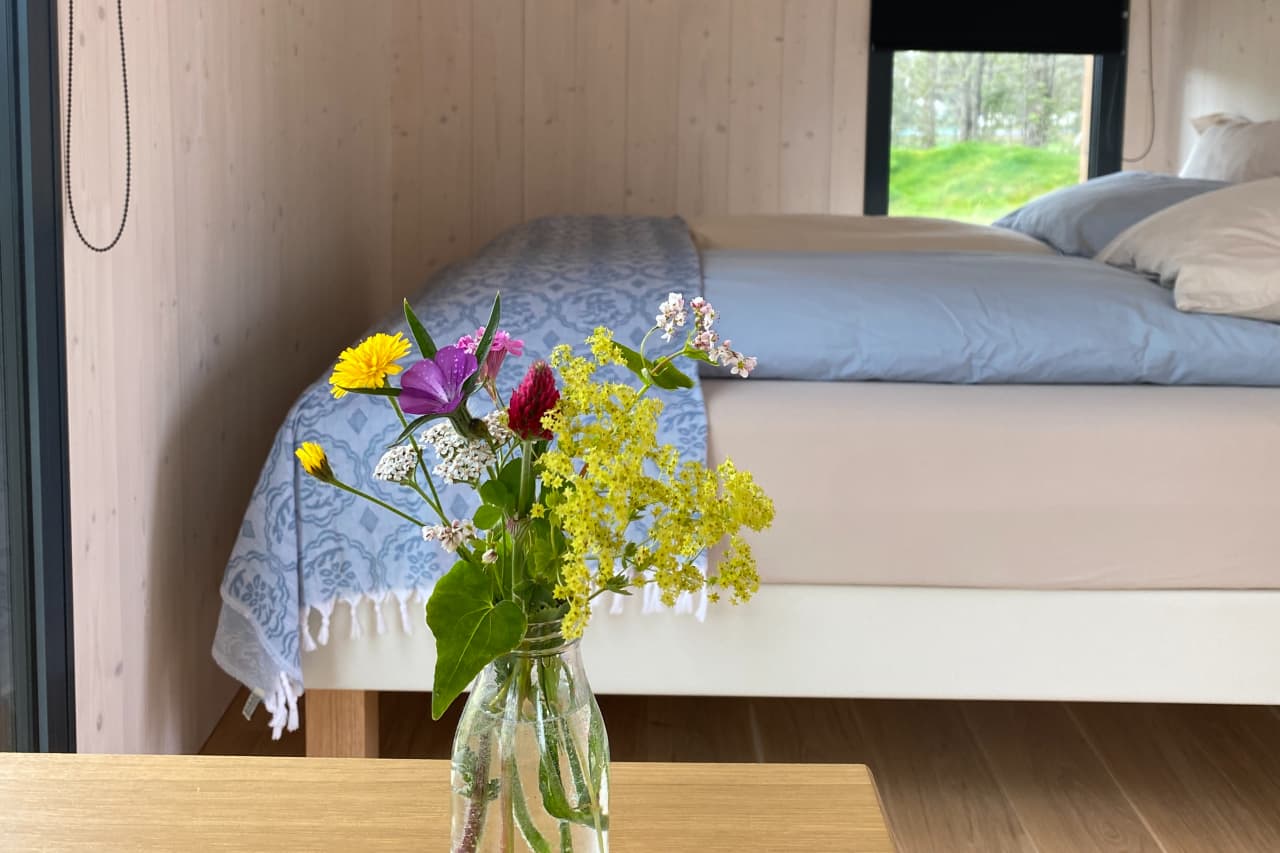 At Bjarmaland in Laugarás, we offer accommodation in two beautiful, thoughtfully designed tiny cabins. Each cabin is ideal for two guests and features a comfortable double bed and a well-equipped kitchen. Laugarás, in the Bláskógabyggð area, is a small village that has grown around healthcare services and horticulture. The area is rich in geothermal hot water, and just a 5-minute walk away you’ll find the newly opened Laugarás Lagoon, along with the high-quality restaurant Ylja. Bjarmaland is also home to an art gallery showcasing and selling works by Icelandic artist Úlfar Örn, alongside selected souvenirs and local items to remember your trip. We are perfectly located for exploring Iceland’s Golden Circle, with Skálholt and Reykholt close by, and Friðheimar within easy reach.