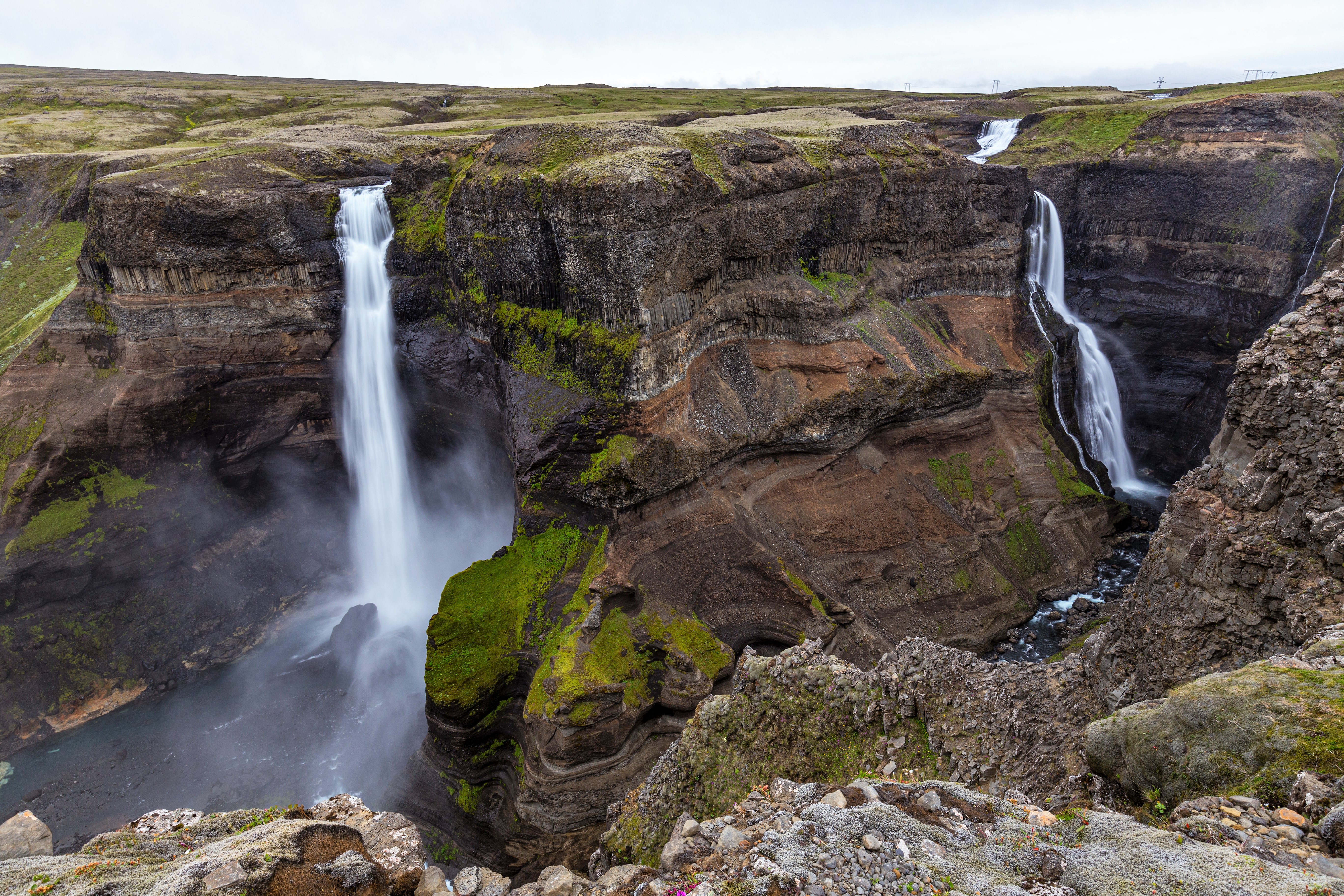 The waterfall Háifoss is situated near the volcano Hekla in the south of Iceland. The river Fossá, a tributary of Þjórsá, drops here from a height of 122 m. Háifoss is the third-highest waterfall on the island. The waterfall makes a great detour on a road trip around the Golden Circle or when driving to Landmannalaugar.