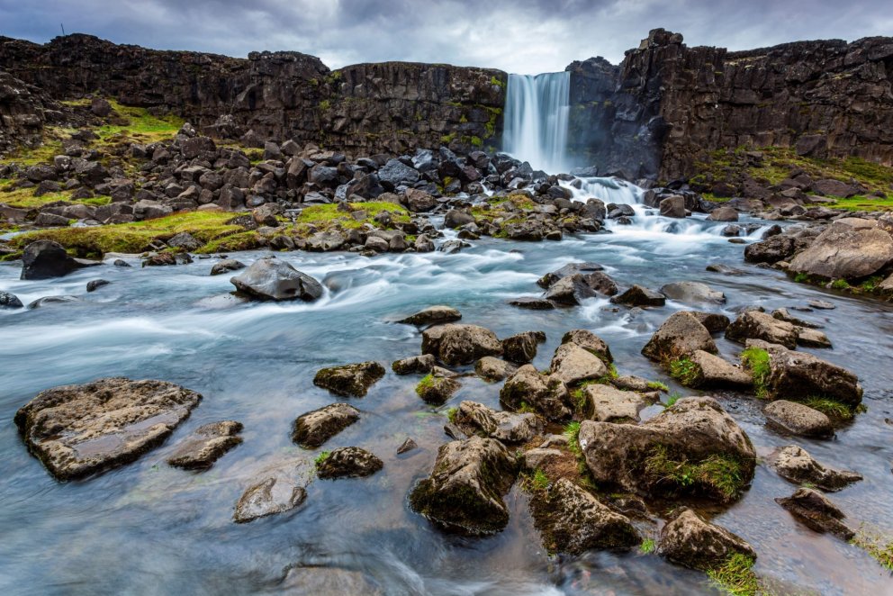 Systrafoss is the name of the waterfall where the river Fossá falls from the lake Systravatn, over the mountain edge above Kirkjubæjarklaustur. The waterfall is in a small canyon just on the edge of the town. To get to the waterfall, you first need to drive into town and then west on Klausturvegur road to the western part of the town.
