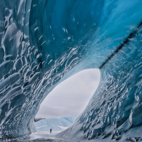 Crystal Ice Cave of Vatnajökull, located in the outlet glacier Breiðamerkurjökull. This is a seasonal ice cave that forms in the wintertime and can be visited from November until April.
