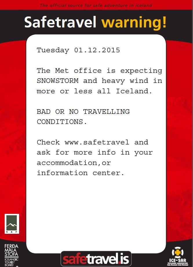 The Met office is expecting SNOWSTORM and heavy wind in all Iceland tomorrow