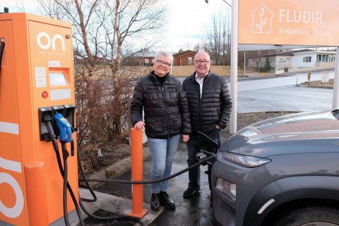Fast-charger for EVs has been set up in Flúðir. It is located at Icelandair Hotel Flúðir.