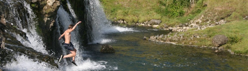 Hoppa í Reykjafoss og baða sig í honum á sólríkum dögum.