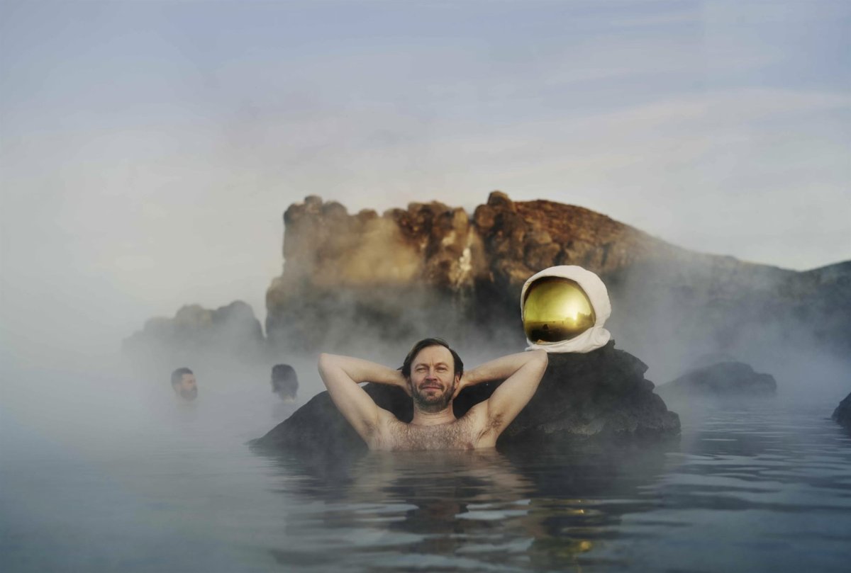 Sveinn Ólafur Gunnarsson í hlutverki geimfara sem ber saman kosti þess að ferðast til Íslands og ferðast til geimsins