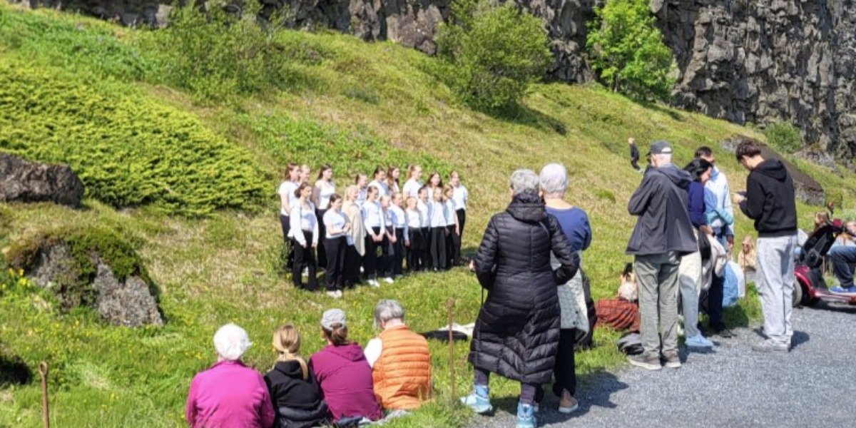 Kórasöngur í Almannagjá við Lögberg heldur áfram hjá okkur.