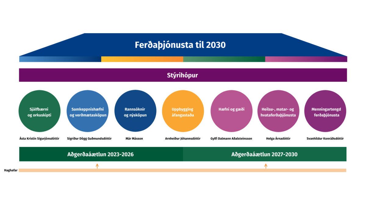 Lilja Dögg Alfreðsdóttir ferðamálaráðherra hefur skipað sjö starfshópa sem falið er að vinna tillögur að aðgerðaráætlun fyrir ferðamálastefnu til 2030.