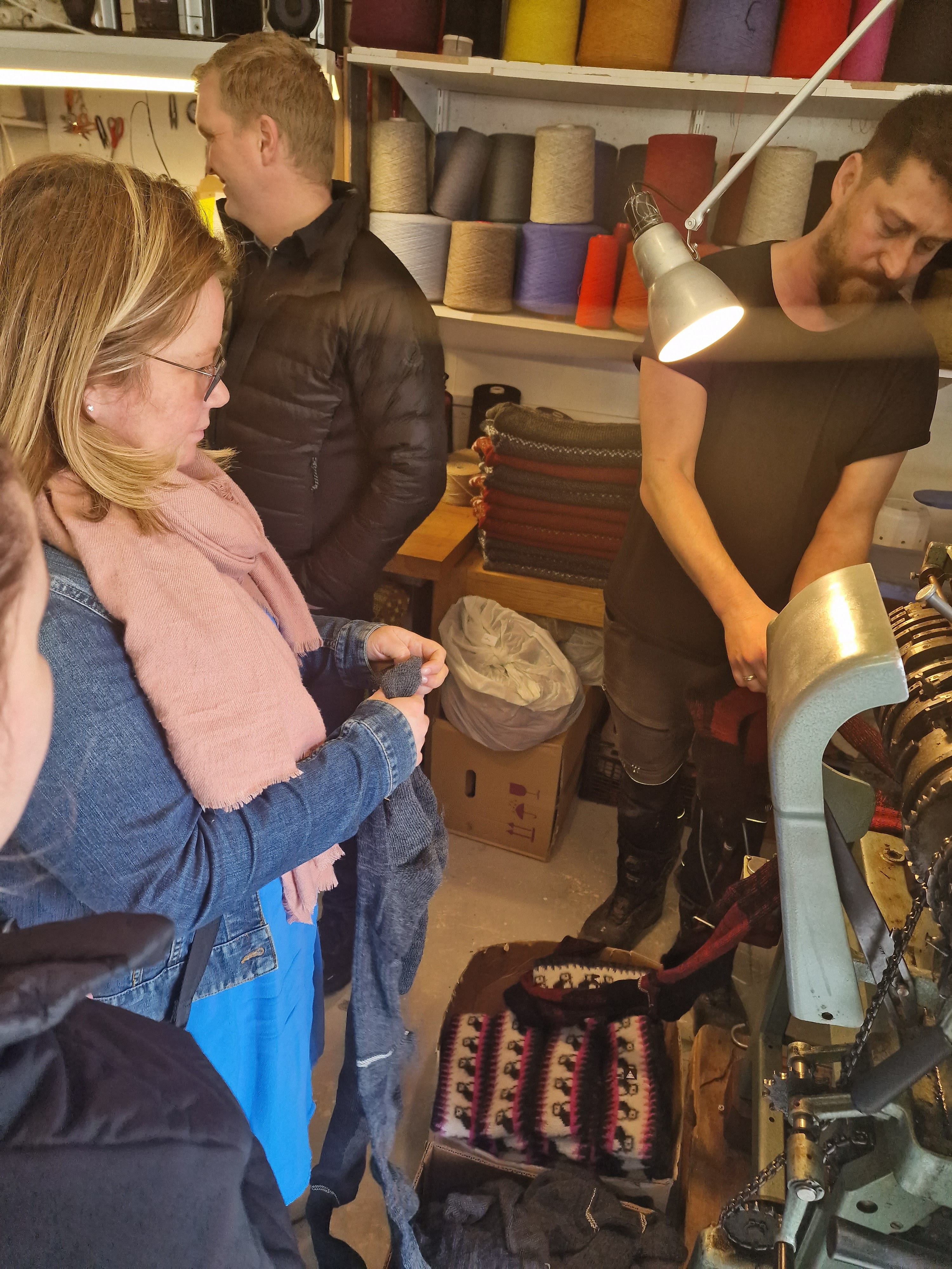 Hádegismatur og fundahöld fóru fram á veitingastaðnum Suður-Vík og áður en heim var haldið heimsótti hópurinn Prjónastofuna Kötlu sem hjónin Beata og Marek stofnuðu og hafa rekið í nokkur ár. Vörurnar þeirra eru úr 100% íslenskri ull og byggja á áralangri hefð fyrir framleiðslu prjónavöru í Mýrdal.