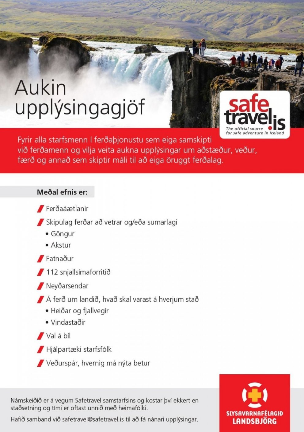 Safe Travel mun halda námskeið fyrir ferðaþjónustuaðila sem kallast "aukin upplýsingagjöf fyrir starfsfólk í ferðaþjónustu" fimmtudaginn 2. júní kl 10 í Ráðhúsi Árborgar.