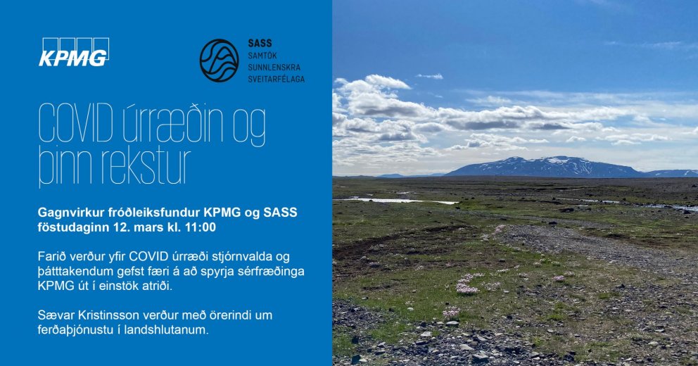 Þann 12. mars næstkomandi bjóða KPMG og SASS til gagnvirks fróðleiksfundar um COVID úrræði stjórnvalda.