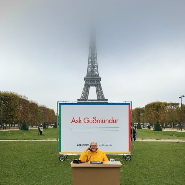 Hægt er að fylgjast með heimsóknum Guðmundar til Parísar og London á samfélagsmiðlum markaðsverkefnisins og einnig með #AskGuðmundur, #IcelandSecret og www.inspiredbyiceland.com