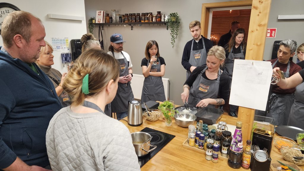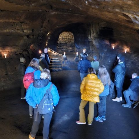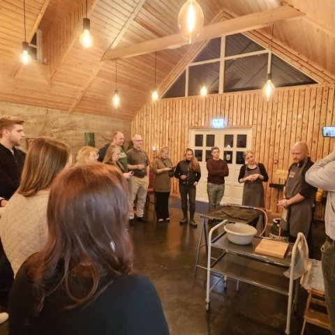 Ferðin fékk nafnið "Caves and Culinary of South Iceland", en eins og nafnið gefur til kynna snerist hún um mat og hella á Suðurlandi. Fyrsti viðkomustaður var Jarðhitasýning ON við Hellisheiðarvirkjun þar sem Laufey Guðmundsdóttir tók á móti okkur ásamt öðru starfsfólki og veitti hópnum innsýn í virkjun og nýtingu jarðvarma á Íslandi á aðgengilegan hátt með myndum og margmiðlunartækni. Næsta stopp var Raufarhólshellir þar sem frábær starfsmaður fylgdi okkur um þennan heillandi helli. Eftir þetta héldum við á Selfoss og fórum í matarferð um Selfoss á vegum Selfoss Town Tours. Í matarferðinni fræddumst við um nýja miðbæinn og sögu Selfoss, kíktum í Skyrland og borðuðum loks ljúffengan mat á Messanum. Það var smá pása frá mat þegar hópurinn hafði innritað sig á Stracta Hótel Hellu, en þar fór virkilega vel um hópinn. Kvöldinu vörðum við svo í Hlöðueldhúsinu í Þykkvabæ þar sem hópurinn spreytti sig í flatkökugerð og bjó til forréttinn sinn sem var allur úr hráefnum sem Dana og Vilhjálmur, eigendur Hlöðueldhússins rækta sjálf. Á meðan aðalrétturinn og eftirrétturinn var snæddur, söng Dana og spilaði á allskonar hljóðfæri, hópnum til mikillar skemmtunar.