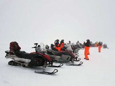 Lagt var af stað morguninn 4. október með 18 ferðaheildsala frá mismunandi löndum og var förinni heitið í snjósleðaferð upp á Langjökul með Mountaineers of Iceland.