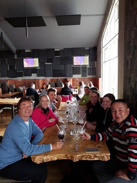 Eftir góðar móttökur Mountaineers of Iceland og snjósleðaferðina upp á Langjökli var snæddur hádegisverður á veitingastaðnum Glímu við Geysi. Hópurinn lauk svo ferðinni með því að slaka í gufu og heitri laug í Laugarvatn Fontana.