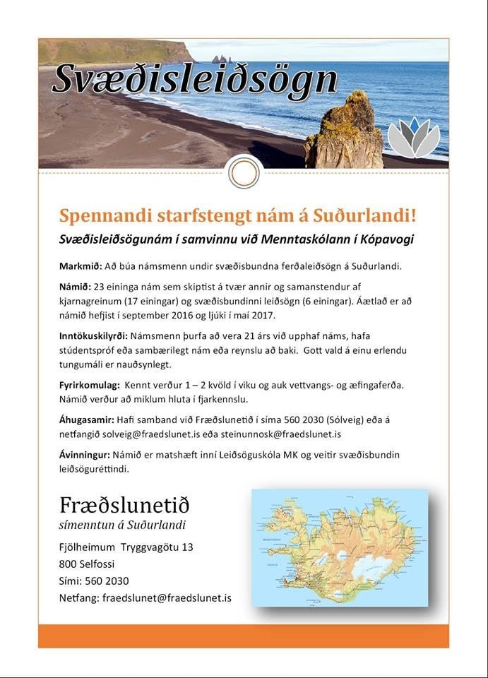 Fræðslunetið með spennandi starfstengt nám í svæðisleiðsögn á Suðurlandi.