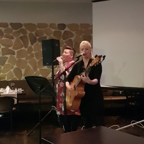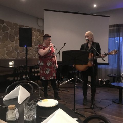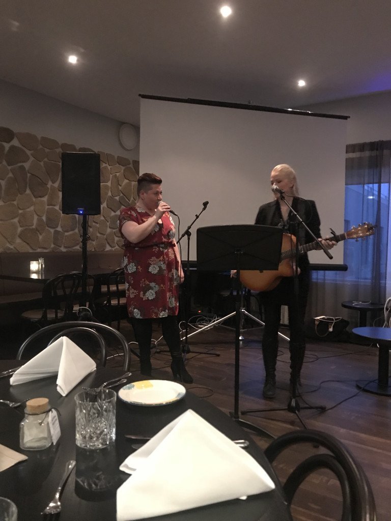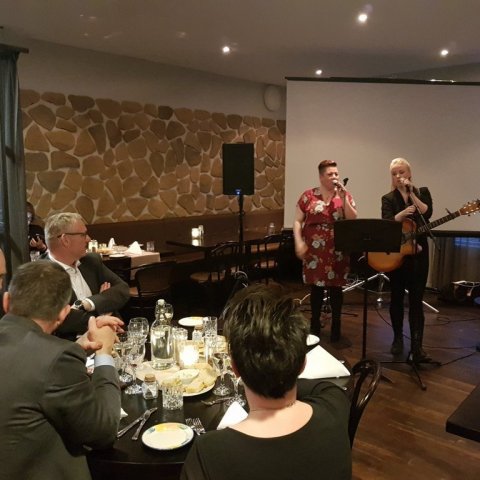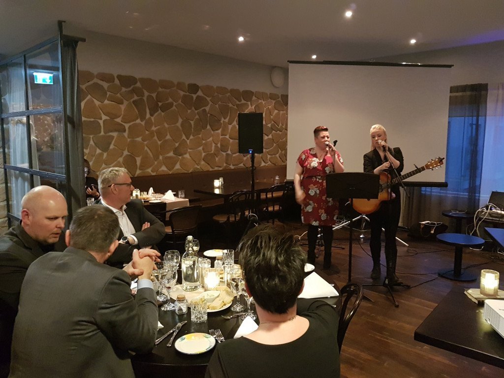 Um kvöldið var svo boðið uppá flotta dagskrá þar sem Hrafnhildur Ýr Víglundsdóttir og Jónína Aradóttir fluttu ljúfa tóna undir borðhaldi. Sunnlendingurinn Einar Bárðarson hélt uppi dagskránni með skemmtilegri sýn á ferðaþjónustuna á milli þess sem dregið var úr veglegum vinningum í happdrættinu góða.