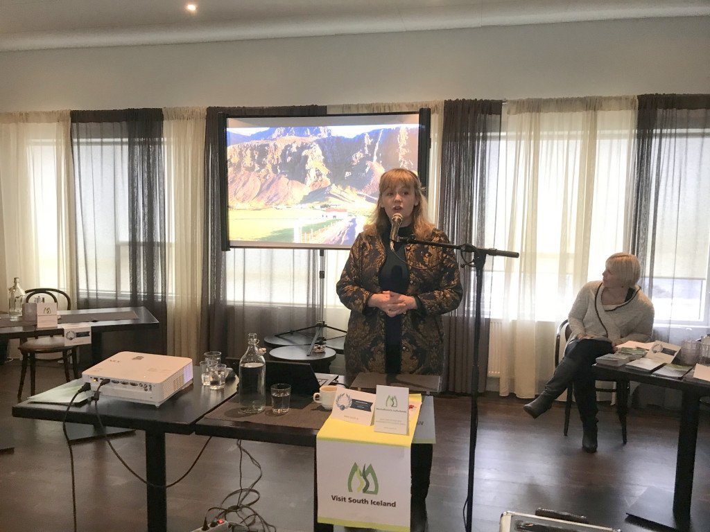 Fyrst á mælendaskrá var Eva Björk Harðardóttir, oddviti Skaftárhrepps og eigandi Hótel Laka með erindið Nafli alheimsins þar sem hún miðlaði m.a. reynslu sinni af áhrifum ferðaþjónustu á samfélagið. Næstur á mælendaskrá var Þorvarður Árnason, forstöðumaður Rannsóknarseturs HÍ á Hornafirði þar sem hann fjallaði um rannsókn sem verið er að vinna um Samfélagsleg áhrif ferðaþjónustu á Suðurlandi ásamt því að kynna stuttlega verkefni sem hann, ásamt Arndísi Láru eru að vinna um Yndisævintýraferðir. Þá fóru þær Laufey Guðmundsdóttir og Anna Valgerður Sigurðardóttir, verkefnastjórar áfangastaðaáætlana DMP yfir ferlið og stöðuna á því verkefni.