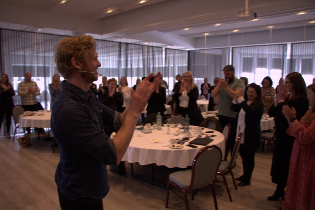 Eftir hefðbundin aðalfundarstörf tók Bjartur Guðmundsson leikari og fyrirlesari við með erindi um hvernig þjónusta getur skapað áðdáendur.
