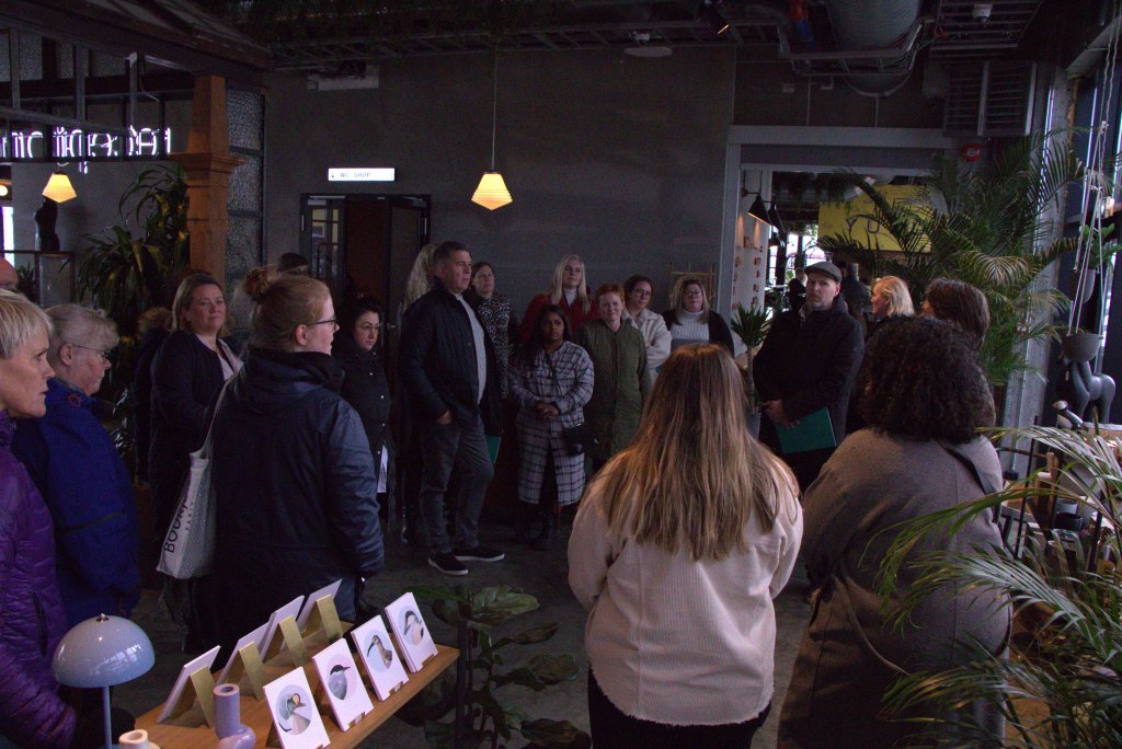 Því næst hélt hópurinn í létta gönguferð um Hveragerði þar sem heimsótt voru nokkur af þeim fjölmörgu fyrirtækjum sem starfa á svæðinu. Meðal fyrirtækja sem hópurinn heimsótti voru Ölverk, Listasafn Árnesinga, Iceland Activities og Gróðurhúsið.