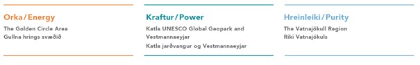 Tengingarnar sem við sækjumst eftir eru orka, kraftur og hreinleiki, en þær endurspeglast í þrískiptingu Suðurlands. Við viljum að þessar tengingar komi fólki til hugar þegar það talar um eða skoðar Suðurlandið. Þessar tengingar þurfa að vera sterkar, jákvæðar og einstakar.